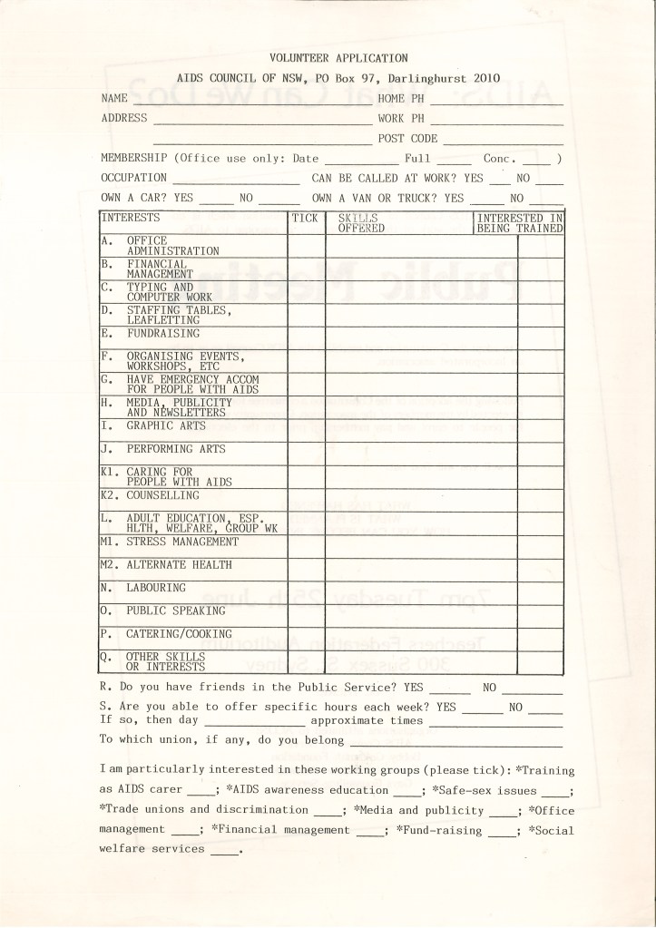 The AIDS Council of New South Wales played a pivotal role in educating an impacted community. In the 1985-1986 financial year, ACON distributed more than fifty thousand pieces of literature. That year’s annual report also stated that: