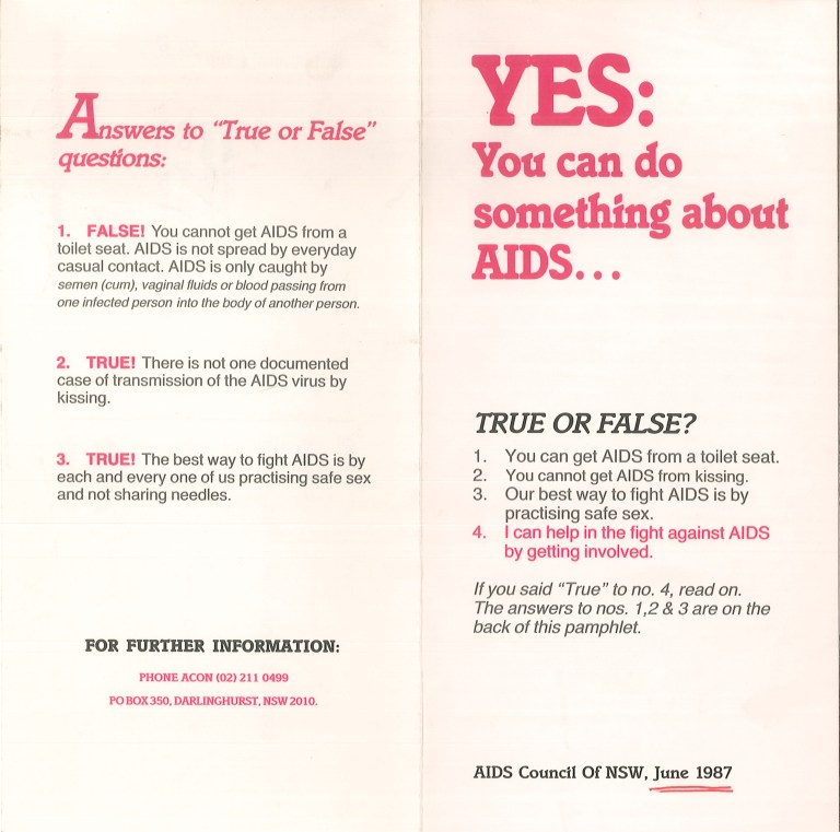 Yes: You Can Do Something About AIDS, June 1987 (ACON) [side 1]. Image courtesy of the Australian Lesbian and Gay Archives.
