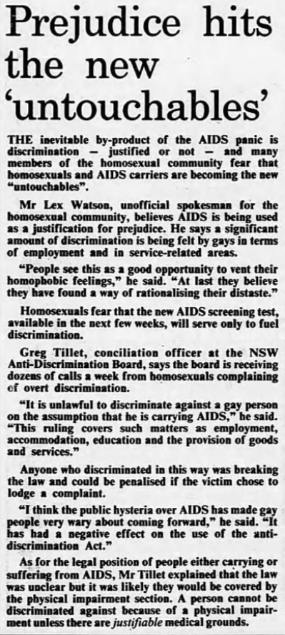 ‘Prejudice hits the new ‘untouchables’. Sydney Morning Herald 3 February 1985.