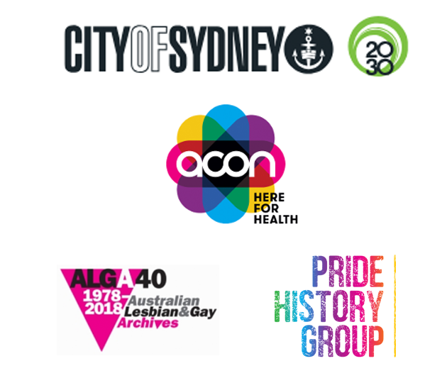 This exhibition has been made possible through sponsorship provided by the City of Sydney to exhibition curator Dr. Shirleene Robinson. The exhibition has also benefitted enormously from a partnership with ACON. Thank you to the Australian Lesbian and Gay Archives (ALGA) for providing permission to use many of the images in this exhibition, and to Sydney’s Pride History Group for ongoing support.
